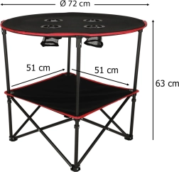 Spetsiaalne disain joogitopsi avadega tagab, et jook on alati käepärast ja laud püsib stabiilne. Ideaalne valik neile, kes hindavad mugavust ja praktilisust telkimisel, piknikul või kalal. Selle silmapaistev välimus ja funktsionaalsus teevad sellest väljapaistva toote turul.