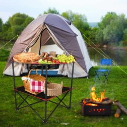 Ideaalne telkimiseks, piknikeks või aiapidudeks tänu stabiilsele tööpinnale.
