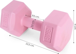 Avastage universaalsed hantlid, millega treenite käsi, selga, kõhtu, jalgu ja tuharaid. 3 kg raskus ühe hantli kohta sobib suurepäraselt jõu, vastupidavuse ja kaloripõletuse arendamiseks. Kuusnurkne kuju hoiab ära veeremise ja tagab stabiilsuse nii puhkehetkel kui ka toengharjutustes.