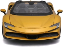 Bburago Ferrari SF90 Spideri 1:18 mõõtkavas mudelauto on ideaalne kingitus kollektsionääridele ja sportautode fännidele. See mudel on valmistatud kvaliteetsest metallist ja plastist, mis tagab vastupidavuse ja autentse välimuse. Detailid, nagu mustad veljed, avatud katus ja täpne salong, garanteerivad, et jääte selle teostusega rahule.