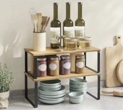 See Ruhhy bambusest köögiriiul pakub niiskuskindlust ja ei ima lõhnu, muutes selle ideaalseteks riiuliteks teie maitseainete ja toiduainete hoiustamiseks. Elegantne disain koos musta metallraamiga lisab teie köögile moodsa ja loodusliku ilme.