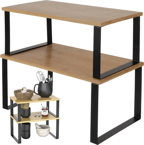 Selle riiulikomplektiga korraldate oma köögi praktiliselt ja stiilselt. Bambusmaterjal tagab tugevuse ja stabiilsuse, samas kui metallist tugiraam kindlustab pika tööea ja vastupidavuse.