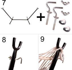 Puidust laotusliist muudab sisse- ja väljaminemise lihtsamaks ning hoiab lamamispinna avatuna. Komplektis on ka paigaldustööriistad ja praktiline kandekott sangadega, et rippvoodit oleks lihtne transportida ja hoiustada. Ideaalne aeda, terrassile või suuremale rõdule – ilma puurimiseta ja ilma järeleandmisteta.
