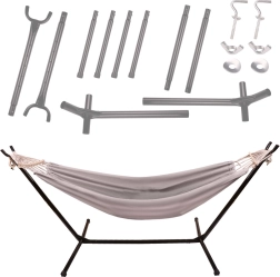 Rippvoodi koos alusraamiga on suurepärane valik, kui soovid mugavat puhkust ilma kinnituspunkte otsimata. Stabiilne metallkonstruktsioon tagab turvalisuse ja vastupidavuse, samas kui lai kangas pakub mugavust lõõgastumiseks, lugemiseks või lühikeseks uinakuks. Tänu riputuskõrguse reguleerimisele 6 tasemel saad asendi hõlpsalt täpselt enda järgi sättida.