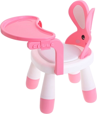 See multifunktsionaalne jänkumustriga tool muudab iga toidukorra ja mängu meeldivaks rutiiniks. Eemaldatav roosa lauake sobib toitmiseks, joonistamiseks ja klotside ladumiseks, samal ajal kui kõrvadega ergonoomiline seljatugi toetab õiget ja mugavat istumist.