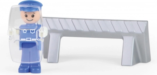 Komplektis on aktiivne politseiniku figuur koos kilbiga ning teetõke, mis võimaldavad lastel luua oma politseistsenaariume ja harjutada rolli aidata ja kaitsta. Mänguasi on täielikult mehaaniline – patareisid pole vaja, ainult puhas lõbu.