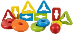 Tutvuge kolme põhikujundiga: ring, kolmnurk ja ristkülik. Mänguasi sisaldab alust ja hulka tükke, millega on lihtne toimetada ja mida saab hõlpsasti kokku laduda.