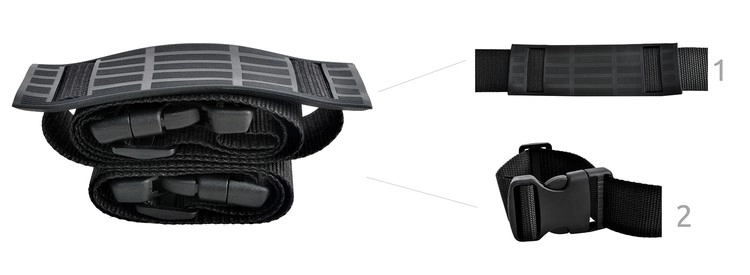 Tugevdatud õlaosa jaotab survet ning hoiab ära rihma soonimise raskema sõiduvahendi kandmisel.