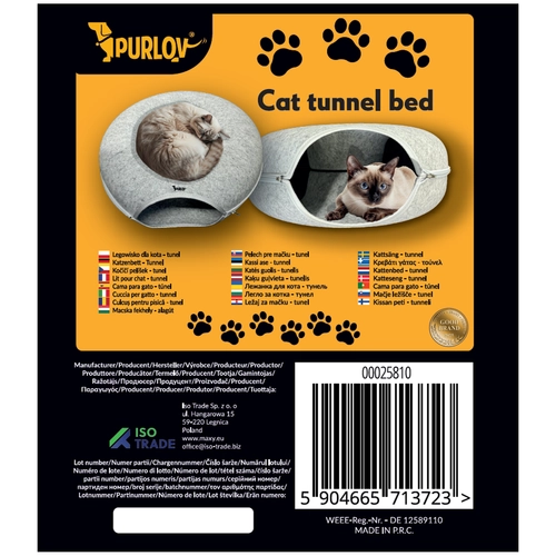 PURLOV kassitunnel on ideaalne valik igale kassipidajale, kes soovib oma lemmikule mugavat ja hubast paika. Ergonoomiline disain ja pehme vildist materjal tagavad, et su kass tunneb end nagu omaenda kuningriigis.
