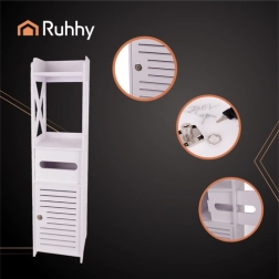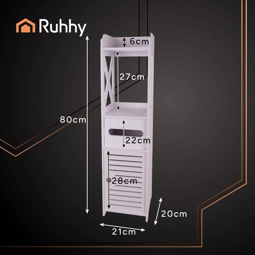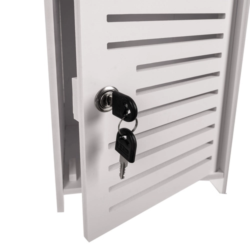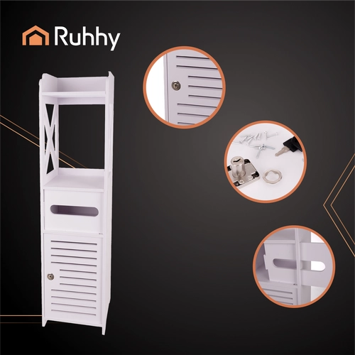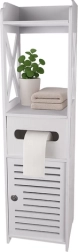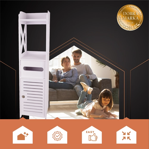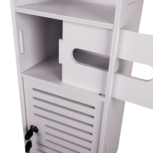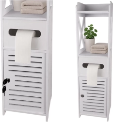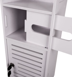 Valge seisev vannitoakapp on praktiline lahendus kosmeetika ja puhastusvahendite hoiustamiseks. Võtmega lukustus kaitseb sisu laste eest ning esteetiline disain sobib igasse vannituppa.