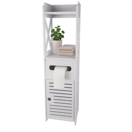 Täiusta oma vannituba selle valge seisva kapiga, mille ajatu ja praktiline disain pakub palju eeliseid: