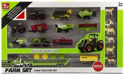 Komplektis on erinevat tüüpi sõidukeid, sh traktorid ja haagised. Tänu realistlikule välimusele ja liikuvatele osadele pakub see mänguasi tunde põnevat tegevust. Karp mõõtmetega 53×31×5 cm hoiab kõik osad kenasti korrastatult.