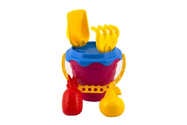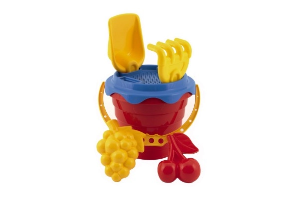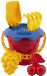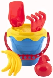 Komplektist leiad kõik, mida on vaja liivaga mängimiseks: ämber, sõel, kühvel, rehad ja kaks vormi.