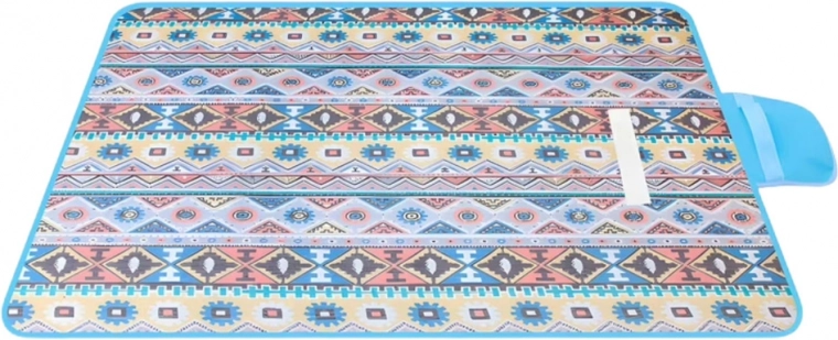 Pärast kasutamist voldid teki lihtsalt kompaktseks kotiks mõõtudega 31 × 23 × 5 cm, millel on krõpskinnis ja praktiline sang kandmiseks. Valida on kaks atraktiivset mustrit: rohelised lehed või sinised geometrilised motiivid – sobivad suurepäraselt suvise meeleoluga nii rannas kui ka pargis.