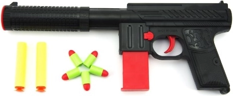 Komplektis on püstol ja pehmed vahunooled, mis on mõeldud laskmiseks märklauale. Ärge tulistage inimesi ega loomi ning mängige alati täiskasvanu järelvalve all. Ideaalne aeda, lastetuppa ja täpsusvõistlusteks sõpradega.