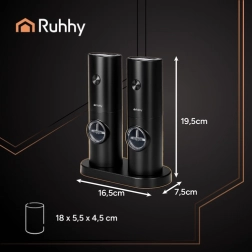 RUHHY elektrilised pipra- ja soolaveskid on ideaalne lisand kõigile, kes hindavad kvaliteeti ja esteetikat. Universaalne kasutus võimaldab jahvatada erinevaid vürtse, sh ürte. Jahvatuse eest hoolitseb keraamiline mehhanism, mis on vastupidav ja täpne ning ei anna metallist kõrvalmaitset.