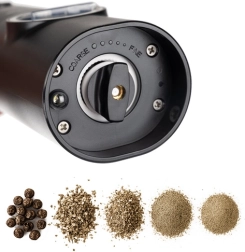 Tänu LED-valgustusele saad maitseaine kogust kontrollida ka vähese valguse korral. Läbipaistev aken näitab alati, kui palju maitseainet on jäänud. Veskid on patareitoitel (4× AAA ühe veski kohta) ja neid on mugav kasutada ühe nupuvajutusega.