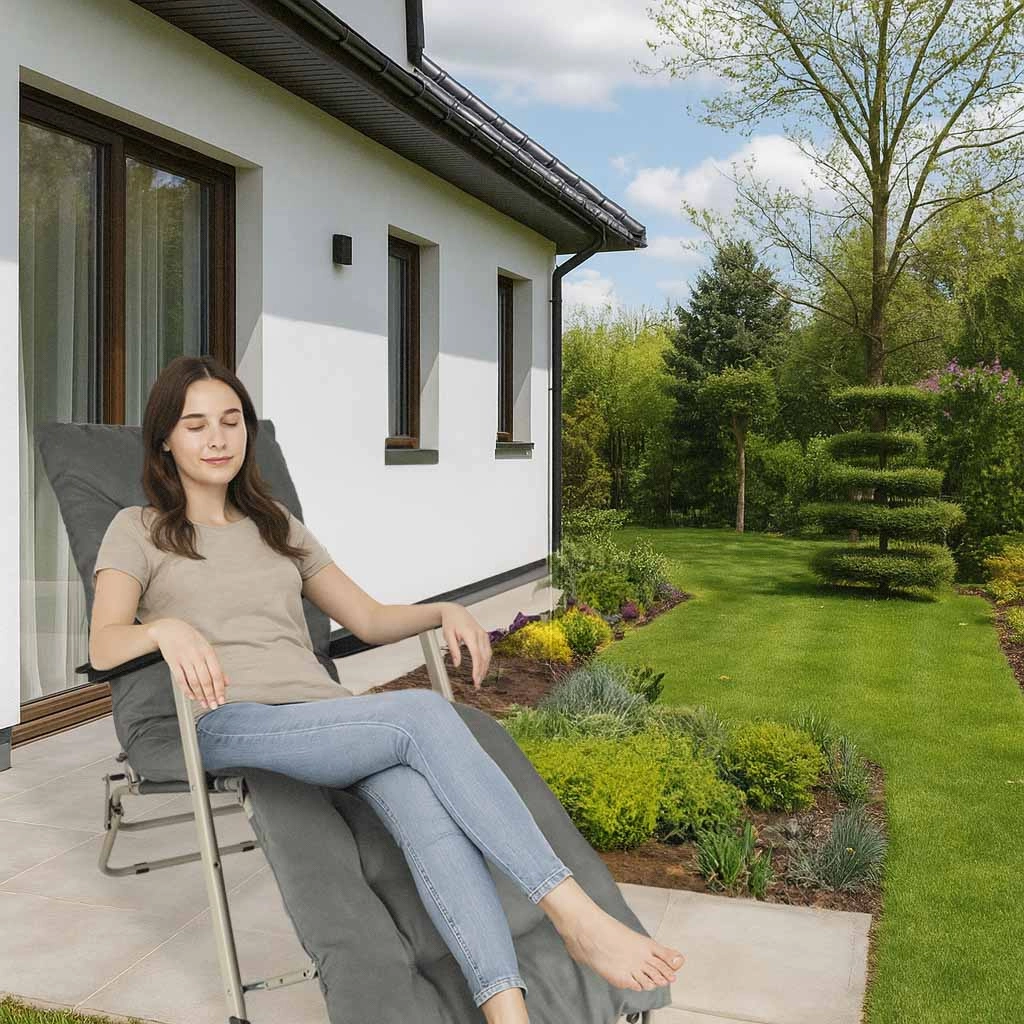 Hall kokkupandav aiapuhketool mugava padjaga on ideaalne valik lõõgastumiseks aias või terrassil. Väga vastupidav konstruktsioon ja kokkupandav disain tagavad lihtsa käsitsemise ja hoiustamise.