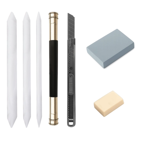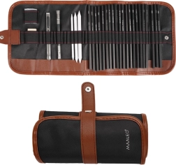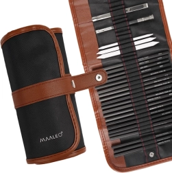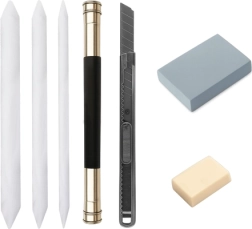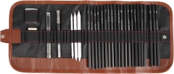 Sisaldab 27 käsitsi valitud tööriista, sh pliiatsid, söed ja muud visandamiseks vajalikud abivahendid.