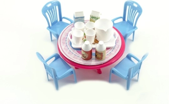 Armas nukukomplekt sisaldab plastist lauda ja toole koos lisanditega kompaktses 12 cm suuruses. Sobib suurepäraselt lastetuppa ja toetab loovat mängu, fantaasia arengut ja rollimänge. Saadaval on 3 värvivarianti. Sobib lastele alates 3. eluaastast.