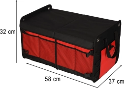 Toote omadused hõlmavad tugevaid käepidemeid lihtsaks kandmiseks ja takjapaela põhjal, mis hoiab korraldaja pagasiruumis paigal. Külgklambrid lihtsustavad kokkupanekut ja hoiustamist. Üheksa taskut pakuvad piisavalt panipaiku, samas kui elastsed rihmad võimaldavad turvalist kinnitamist.