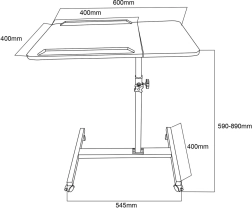 Macleani mobiilne sülearvutilaud ühendab ergonoomika ja mobiilsuse. Kõrguse reguleerimine vahemikus 59–89 cm võimaldab kohandamist teie vajaduste ja tööeelistuste järgi. See sobib ideaalselt igasse keskkonda, nii koju kui ka professionaalsesse ruumi. Topeltplaatide reguleeritav kaldenurk suurendab mugavust ja lihtsustab tööala organiseerimist.