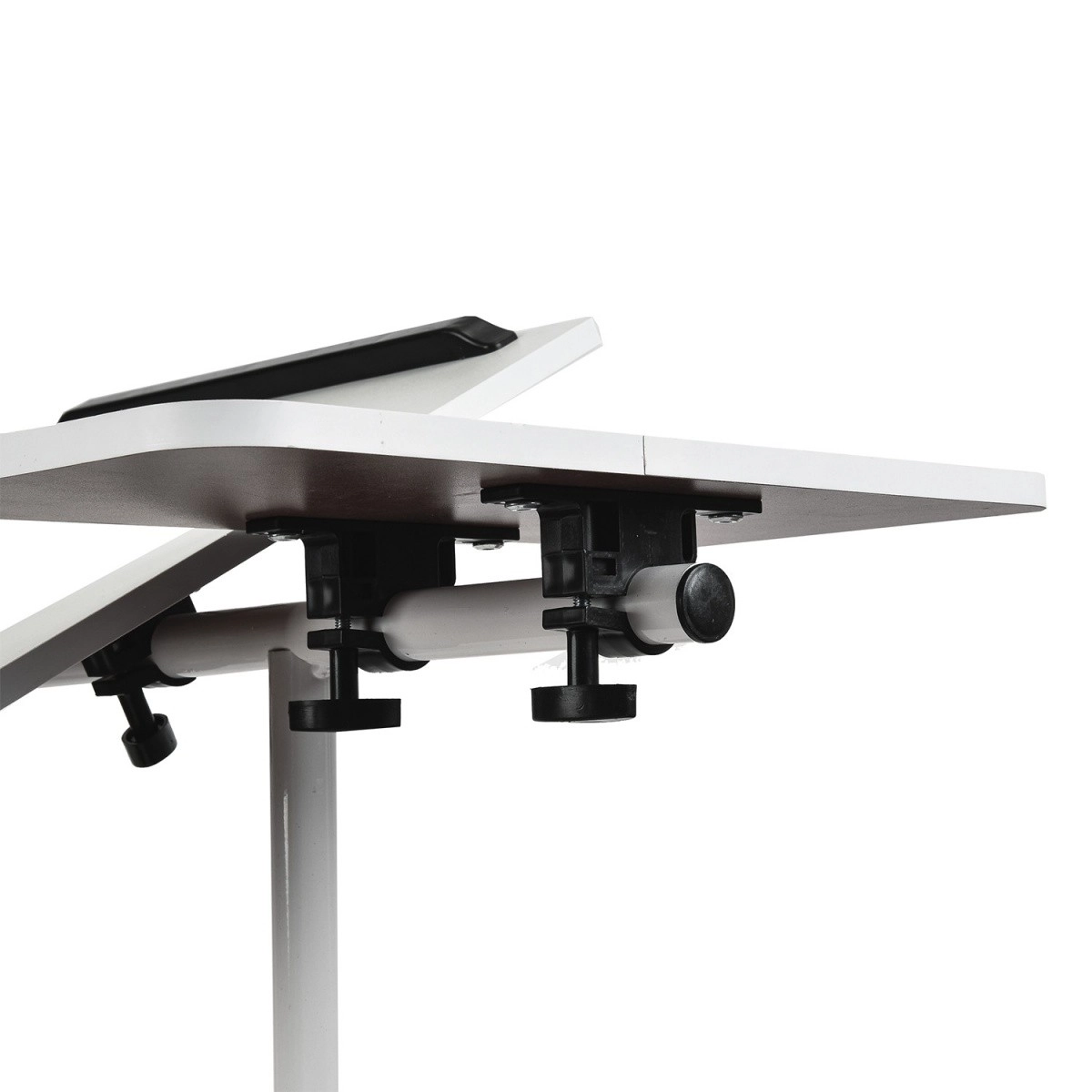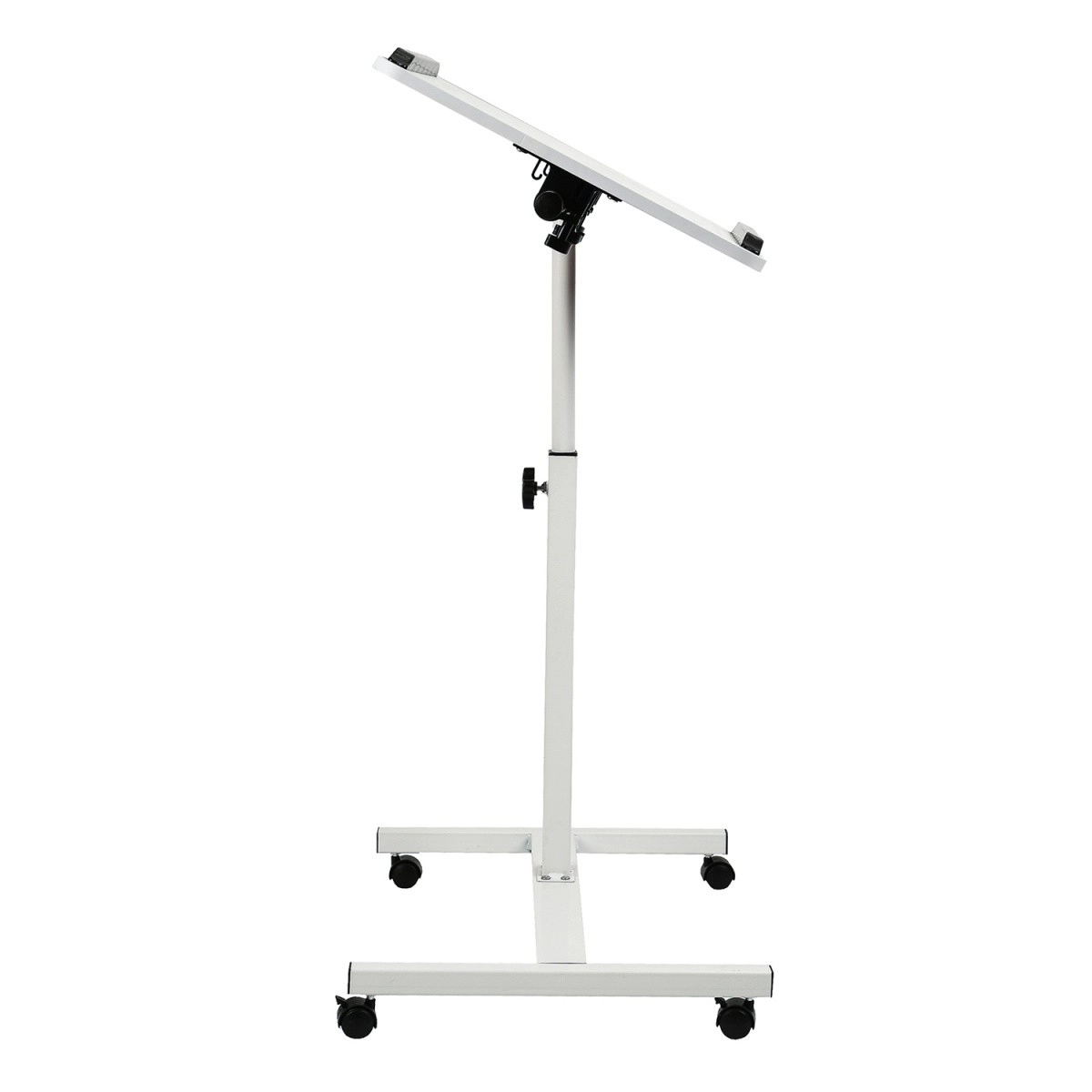 Laual on neli ratast lihtsaks liigutamiseks ja kaks lukustusmehhanismi stabiilsuse tagamiseks. Nii püsib laud paigal ka suure kaldenurga korral, pakkudes täiuslikku mobiilset töökeskkonda.