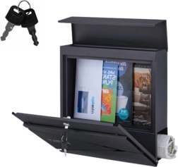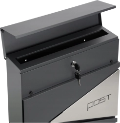Stiilne antratsiitvärvi postkast ühendab moodsa välimuse ja praktilised detailid. Valmistatud kvaliteetsest tsingitud terasest pulbervärvkattega, seega on see korrosioonikindel, talub ilmastikku ja mehaanilisi kahjustusi. Mahutab A4-formaadi, on lai sisestusava 3,5 cm ja eraldi ajalehehoidik allosas. Turvalise sulgemise tagab lukk kahe võtmega.