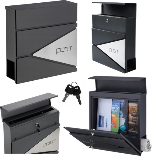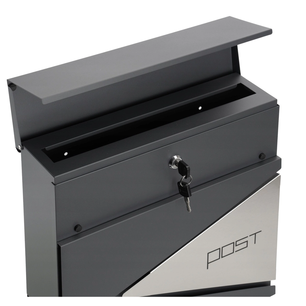 See antratsiitne postkast paistab silma puhta disainiga, mida ilmestavad geomeetrilised avad ja minimalistlik kiri „POST“. Vastupidavate materjalide ja pulbervärvkatte tõttu sobib see suurepäraselt pikaajaliseks välitingimustes kasutamiseks.