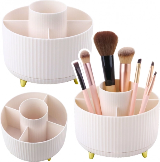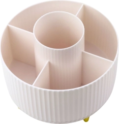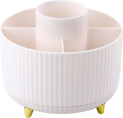 Stiilne ja praktiline kosmeetikakorraldaja koos 360° pöörleva alusega aitab hoida täiuslikku korda. Pakub 5 avarat lahtrit pintslitele, huulepulkadele, pliiatsitele ja muudele tarvikutele. Valmistatud vastupidavast ABS-ist, on stabiilse konstruktsiooniga ja avatud disainiga, mis tagab lihtsa juurdepääsu ka pikematele pintslitele.