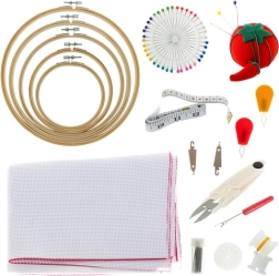 Komplekt sobib suurepäraselt kingituseks ja koduse töötoa varustusse. Praktiline hoiukott hoiab kõik omal kohal ning eri suurusega bambusest tikkimiskad teeb mugavaks nii väikeste kui ka suuremate motiivide kallal töötamise.