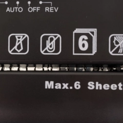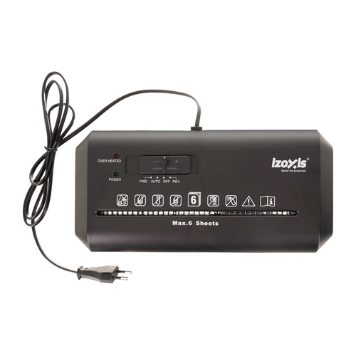 Võimas IZOXIS purustaja 10 l prügikastiga pakub automaatselt start/stop, tagasikäiku ummistuste vältimiseks ja turbetaset P‑2 igapäevaseks dokumentide hävitamiseks. Lõikab 6 mm ribadeks, purustab kuni 6 A4 lehte korraga ja töötab kiirusega 2 m/min – ideaalne kodukontorisse ja väiksematesse ettevõtetesse.
