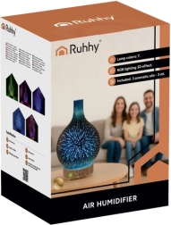 RUHHY on 3-ühes: õhuniisuti, aroomidifuuser ja dekoratiivne LED-lamp. Ultrahelitehnoloogia tänu töötab vaikselt ja tõhusalt, ilma vett soojendamata – ideaalne magamistuppa, elutuppa ja kontorisse. Peegelpinnaga kate, kompaktsed mõõtmed ja silikoonist jalakesed tagavad stabiilsuse ja stiili igas interjööris.