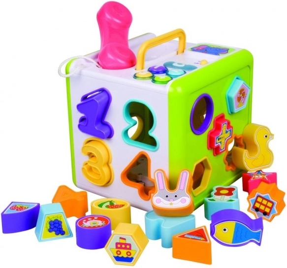 See sorteerimismänguasi on tänu oma erksatele värvidele ja erinevatele sisestatavate kujundite tüüpidele ideaalne kõige pisematele. Igal kuubi küljel on avad, mis on mõeldud kujundite, tähtede ja numbrite sisestamiseks, mis motiveerib lapsi õppima ja mänguliselt ümbritsevat maailma avastama.