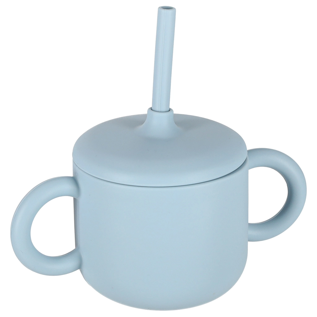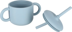 Kahe sangaga silikoonist tass kaane ja integreeritud kõrrega hõlbustab üleminekut lutipudelist. Pehme, mittelibisev pind on mugav väikestele kätele.