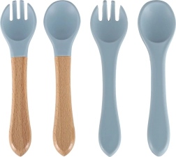 Reguleeritav silikoonpõll sügava taskuga püüab enamiku puru kinni ja kaitseb riideid. Kaks komplekti söögiriistu (silikoonist ning puidust käepidemega) toetavad erinevaid õppimise etappe haaramisel ja tõstmisel. Kaanega tass ja kõrreke aitavad harjutada iseseisvat joomist ilma liigse loksumiseta.