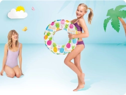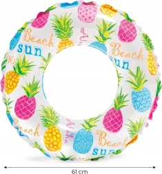 Kerge ja vastupidav INTEXi täispuhutav rõngas läbimõõduga 61 cm on suurepärane veemängudeks ja esimesteks sammudeks ujumise õppimisel. Valmistatud vastupidavast PVC-st (0,18 mm), värviliste motiivide ja mugava haardega. Muster valitakse juhuslikult.
