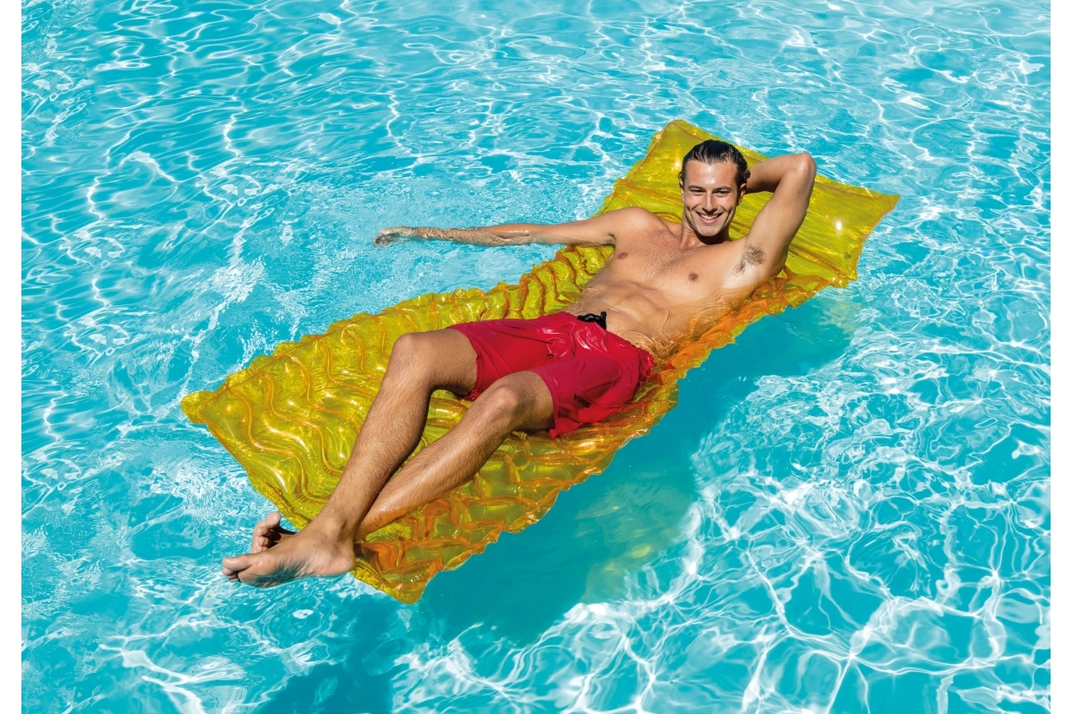 Tänu lainelisele kujule saab madratsi hõlpsalt kokku panna ja kotti pista ka ilma täielikult tühjendamata. Topeltkeevitatud nurgad pikendavad kasutusiga ning kuni 100 kg kandevõime võimaldab mugavat kasutust enamikule täiskasvanutele. Vali meeldiv toon ning naudi mõnusat päikesevõttu ja rahulikku hõljumist vees.