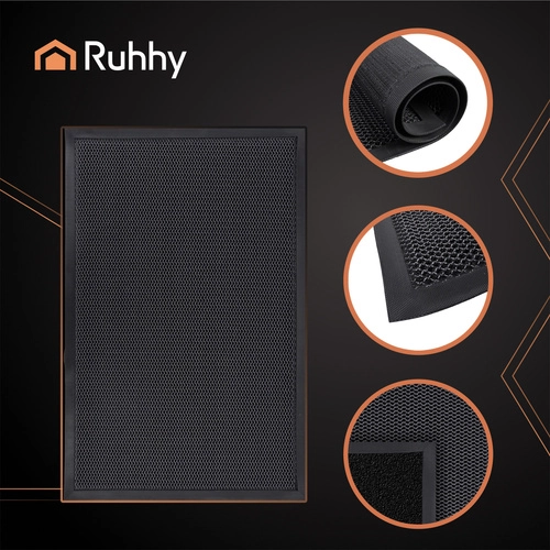 RUHHY matt on usaldusväärne lahendus kodu, korteri, kontori ja kaupluse sissepääsudele. Selle kõva ja vastupidav konstruktsioon 3D-võrguga kraabib tõhusalt jalanõudelt muda, liiva ja vee, nii et interjöör püsib kauem puhas. Tõstetud servad aitavad hoida mustuse ja niiskuse matil ning takistavad nurkade ülespöördumist.