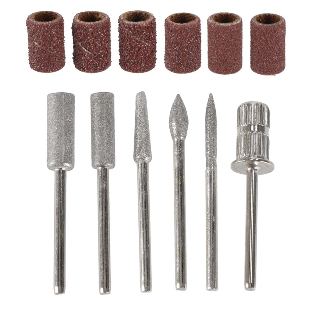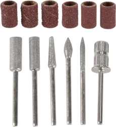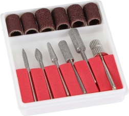 - Rohke komplektsus: 6 metallfreesi (terav, silinder, koonus, kuul, nõel, trummel lihvimisrõngastele) + 6 lihvimismansett-i eri karedusega.