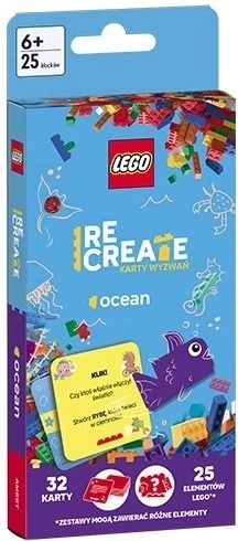Avasta lõputu loovus LEGO Recreate’i komplektiga: Väljakutsekaardid – ookean. Tõmba ülesandeid, vali klotse ja ehita originaalseid mudeleid, mis on inspireeritud veealusest maailmast. Ideaalne nii reisile kui ka koju, üksi või sõpradega. 32 väljakutsekaarti, 25 LEGO klotsi ja ohtralt ideid ehitamiseks – näiteks allveelaev, vaal või meduus – toetavad laste fantaasiat, loovust ja osavust alates 6. eluaastast.