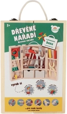 Avastage kvaliteetne puidust tööriistakohver, mis võimaldab lastel turvaliselt matkida täiskasvanute maailma. Komplektist leiab kruvikeerajad, haamri, võtmed, mutrid, kruvid, nurgiku, joonlaua, sae ja muud tarvikud. Kõik on korrapäraselt paigutatud tugevasse käepidemega kohvrisse, et seda oleks lihtne kaasas kanda.