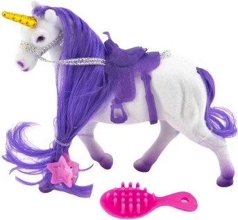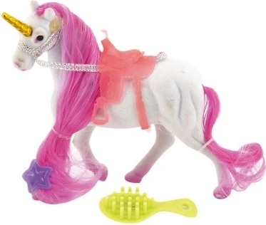 See elegantne ükssarvik rõõmustab iga last, kes armastab võluloomi ja fantaasiamaailma. Tänu pehmele sametisele pinnale ja kammitavale lakale saavad väikesed juuksurid palju loovat lõbu. Kaasas on ka laka viimistlusaksessuaarid ning sadul mugavateks sõitudeks kujutlusmaailmas.