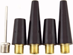Otsikute komplekt, sh pallinõel ja koonilised düüsid, katab pallide, mänguasjade ja madratsite täitmise – piisab keerata külge ja alustada.