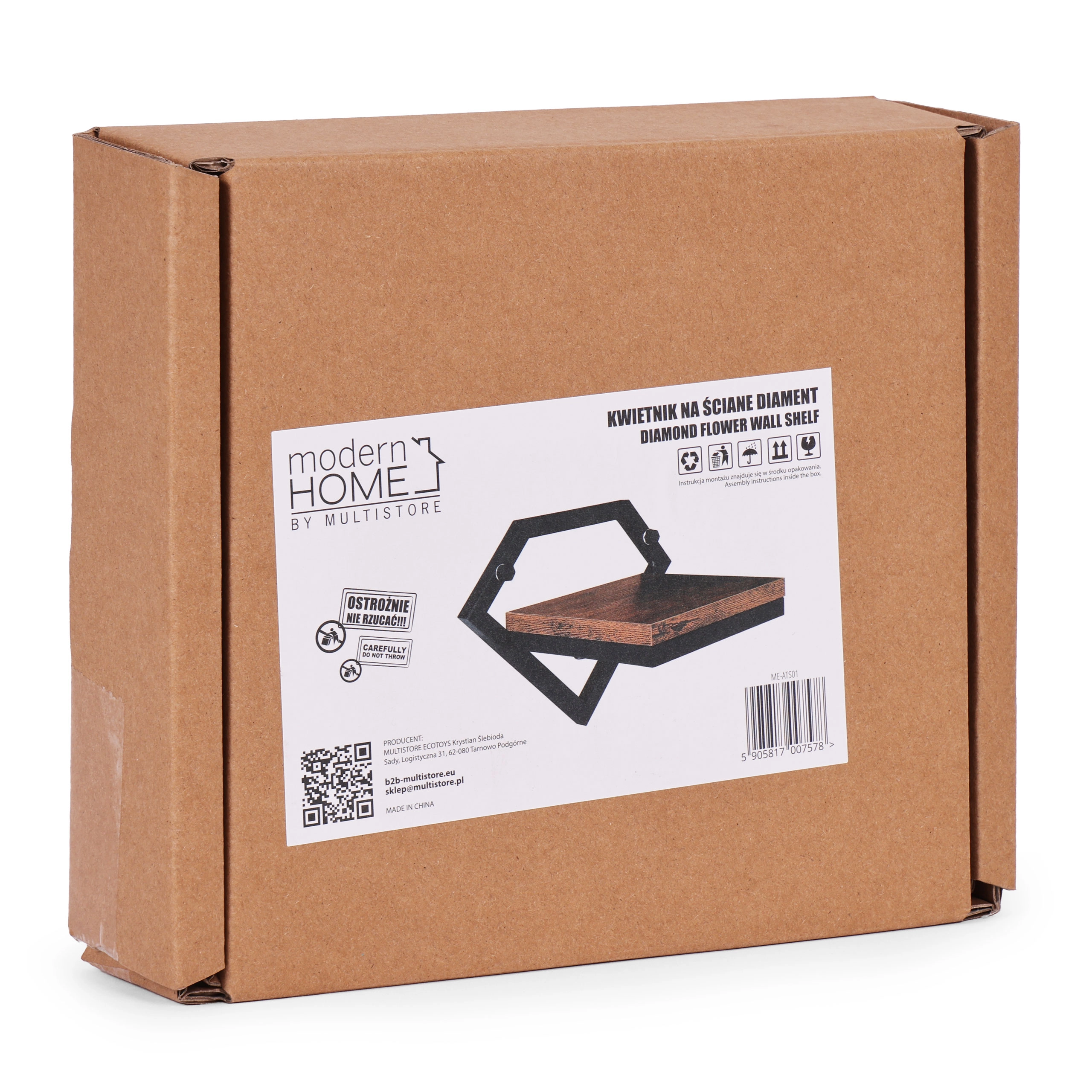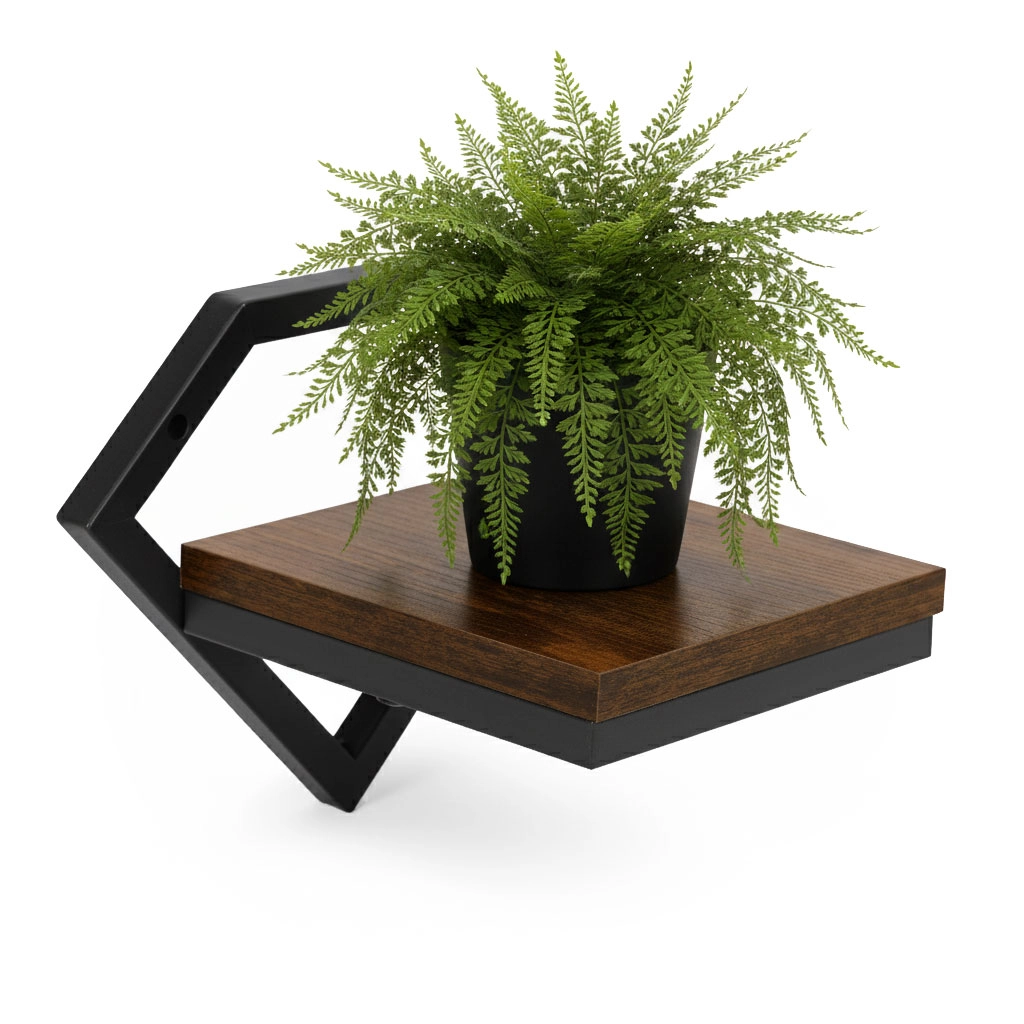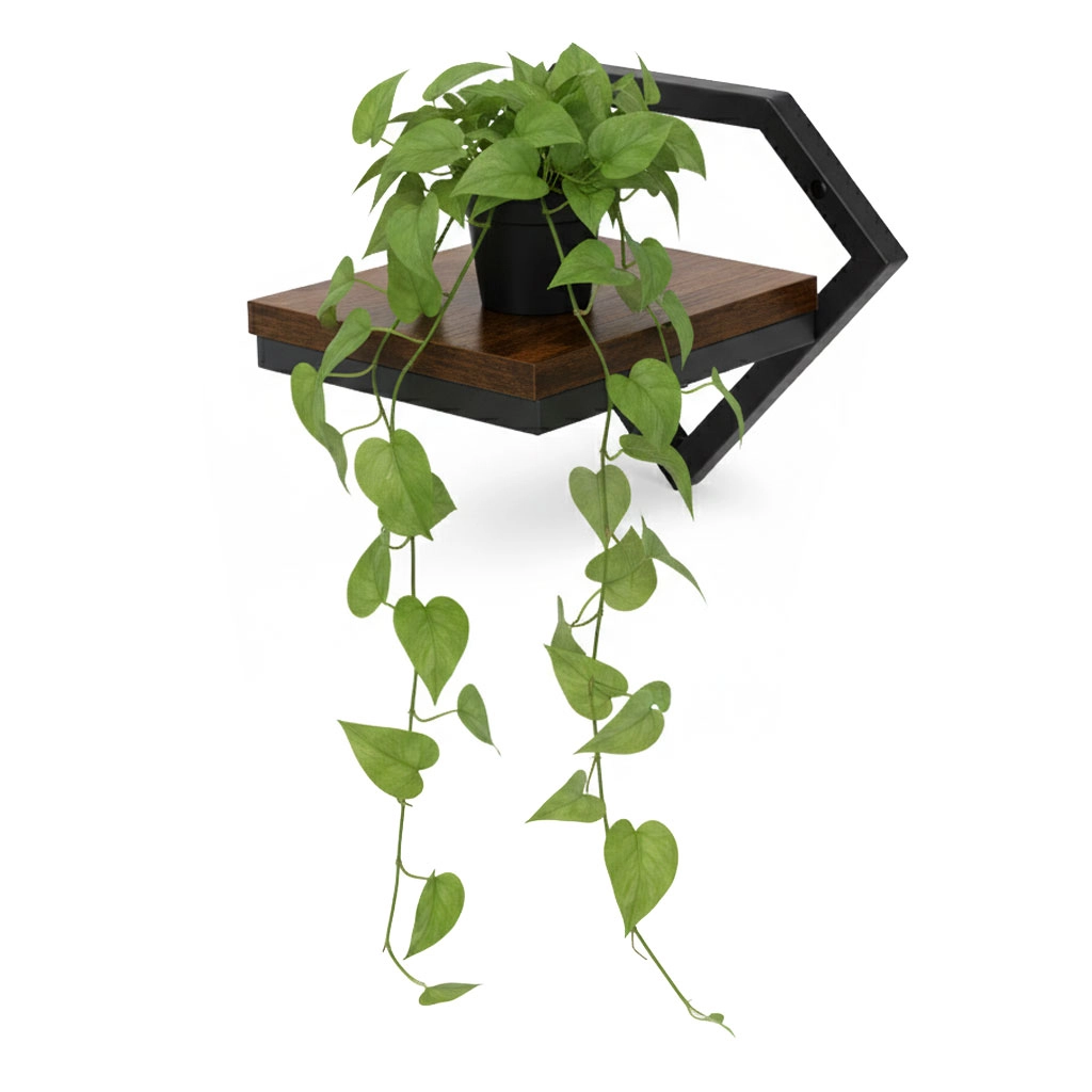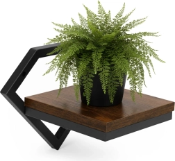 Stiilne seinariiul teemantkujuga terasraami ja puidumustriga plaadiga näitab suurepäraselt sinu taimi ja dekoratsioone. Pakub moodsat industriaalset disaini, stabiilset, pulbervärvitud teraskonstruktsiooni, lihtsat seinale paigaldust koos komplektis olevate kruvidega ning kandevõimet kuni 10 kg.