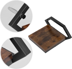 Pulbervärvitud terasest raam on vastupidav korrosioonile ja mehaanilisele kulumisele, puidumustriga puitlaastplaadist riiul lisab soojust ja kontrasti. Pakendis on täielik paigalduskomplekt (tüüblid, kruvid ja katted), nii et kõik vajalik on kohe käepärast.