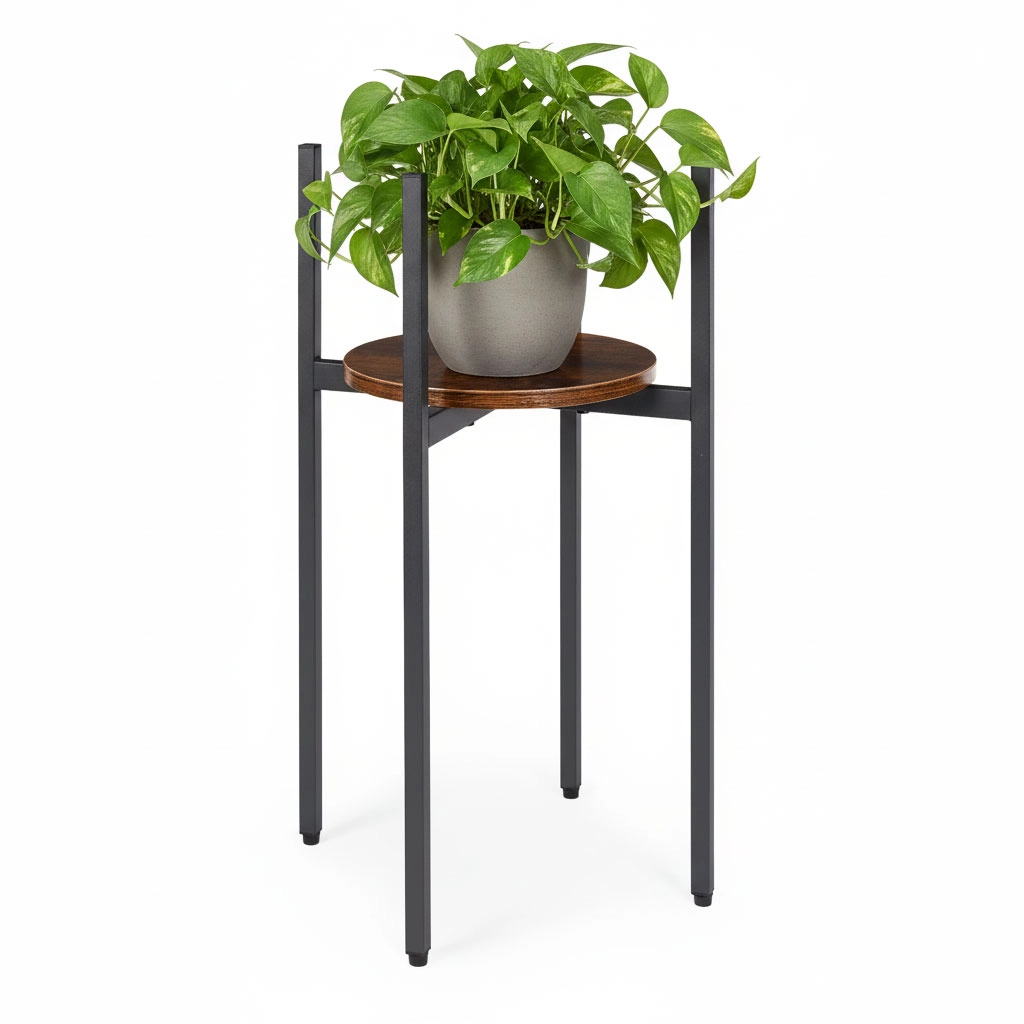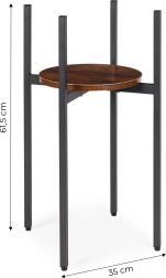 See kõrge industriaalstiilis lillealus toob taimed esile ja lisab interjöörile õhulisust ja elegantsi. Pulbervärvitud teras on vastupidav nii korrosioonile kui ka kriimustustele, samas kui ümar puitlaastplaadist riiul loodusliku puidu dekoreeringuga rõhutab loft-karakterit. Tänu salele jalajäljele sobitub see hõlpsasti väikestesse kohtadesse akna äärde, diivani kõrvale või esikusse.