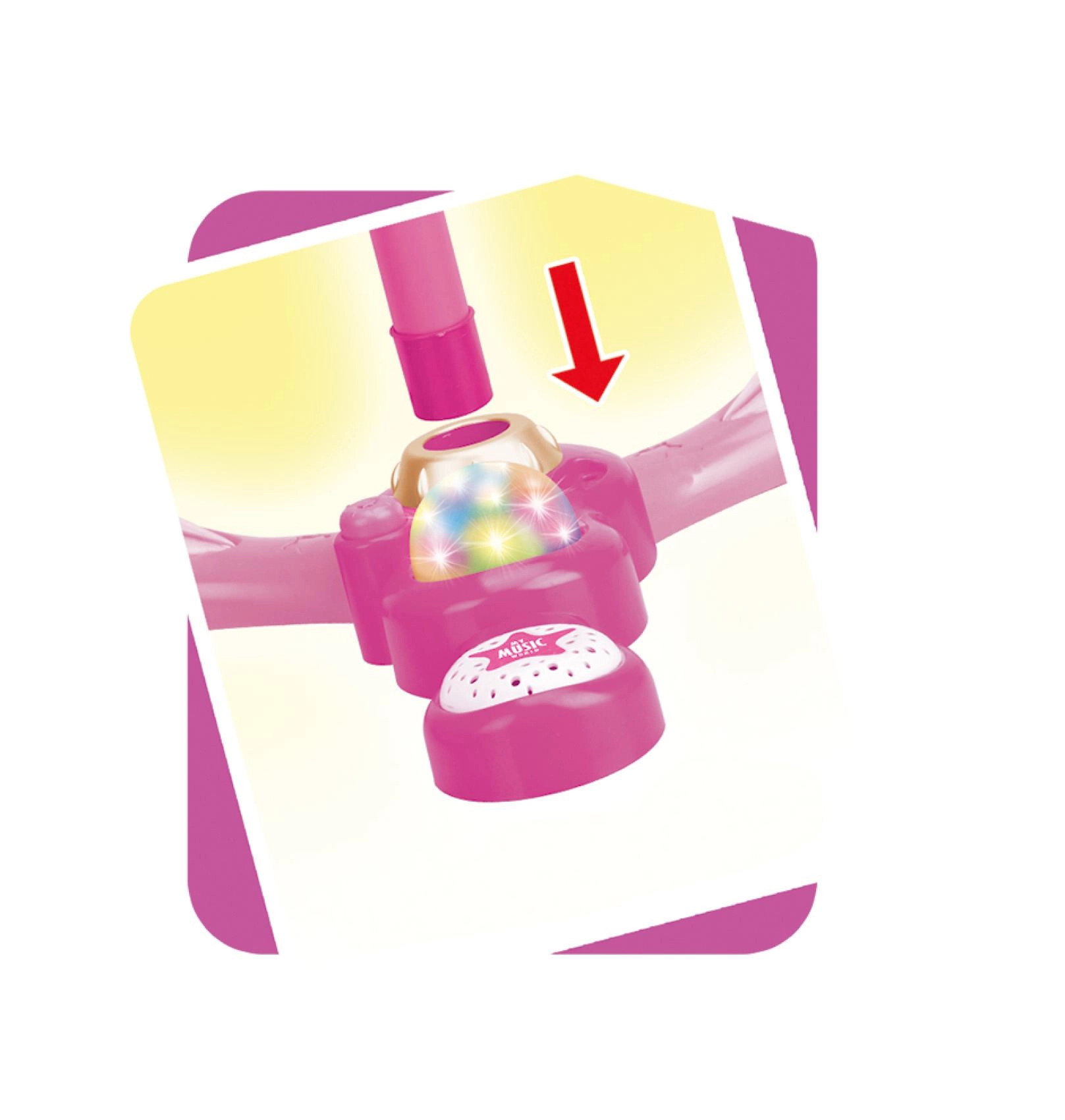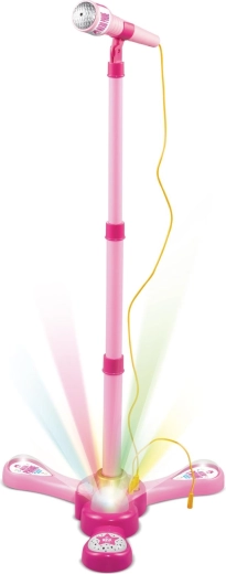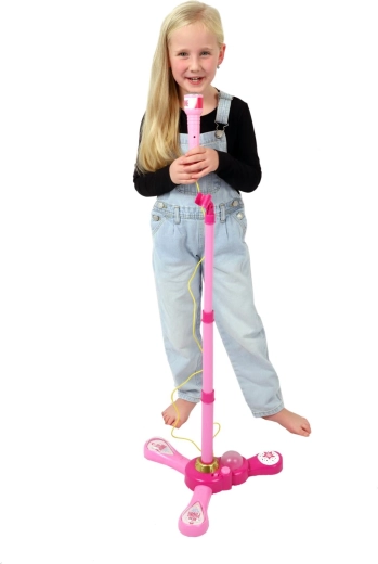 Roosa karaokemikrofon statiiviga muudab iga lastetoa lavaks. See pakub 12 sisseehitatud laulu, värvilisi valgusefekte ning võimalust ühendada MP3-mängija või telefon. Tänu reguleeritavale kõrgusele 40–80 cm kasvab see koos lapsega ja sobib suurepäraselt väikestele lauljatele alates 3. eluaastast.
