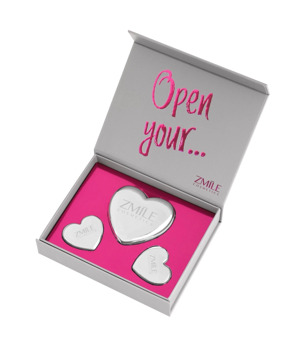 Iga toode on paigutatud elegantsesse südamekujulisse metallkarpi integreeritud peegliga kiireks meigi värskendamiseks igal ajal ja igal pool.
