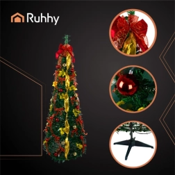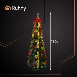 Unusta aeganõudev kaunistamine – see kokkupandav RUHHY jõulupuu on kohe kasutusvalmis ja laotub lahti minutiga. Selle kõrgus on 180 cm, stabiilne alus ning see on täielikult dekoreeritud kuldsete lintide, punaste kuulide ja iileksilehtedega, et luua kohene pidulik meeleolu igas interjööris.